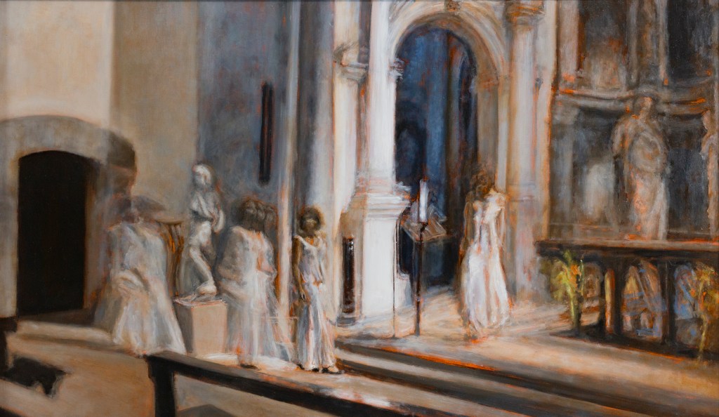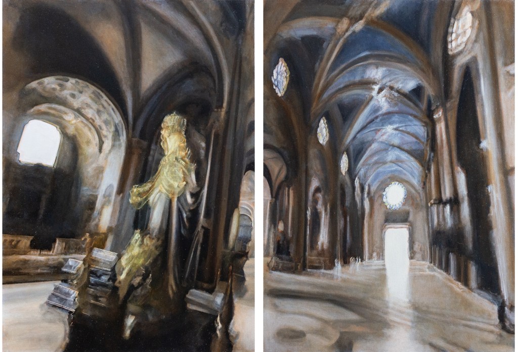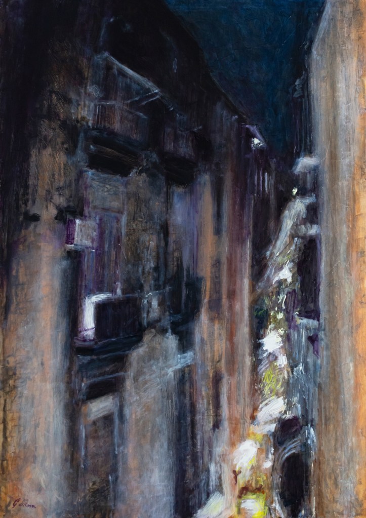 La Notte, Portico D’Ottavia, dipinto ad olio su tela, 50×70 cmIntersezioni nello Spazio Sacro, dipinto ad olio su tela, 70x100cm Eravamo a Santa Maria del Popolo, dipinto ad olio su tavola 50×55 cmSanta Maria Sopra Minerva, Dittico, dipinti ad olio su tela, 100×70 cmSan Giovanni a Carbonara, dipinto ad olio su tavola, 80×50 cm Santa Chiara, dipinto ad olio su tela, 100×70 cmLe Città Nascoste, dipinto ad olio su tela, 70×50 cmLa Città e gli Scambi, dipinto ad olio su cartone, 107×75 cmCamminando i miei passi lasciavano Spazio alla Luce, dipinto ad olio su tela, 50×50 cmLa Costante e Profonda Respirazione tra Luce e Ombra, dipinto ad olio su tela, 60×40 cmLa Luce che Scende, dipinto ad olio su tela, 70×50 cmIl Suo Passo lo contiene ed è misurabile attrraverso la Luce, dipinto ad olio su tela, 50×70 cmPassaggi di Luce, dipinto ad olio su tela, 50×70 cm